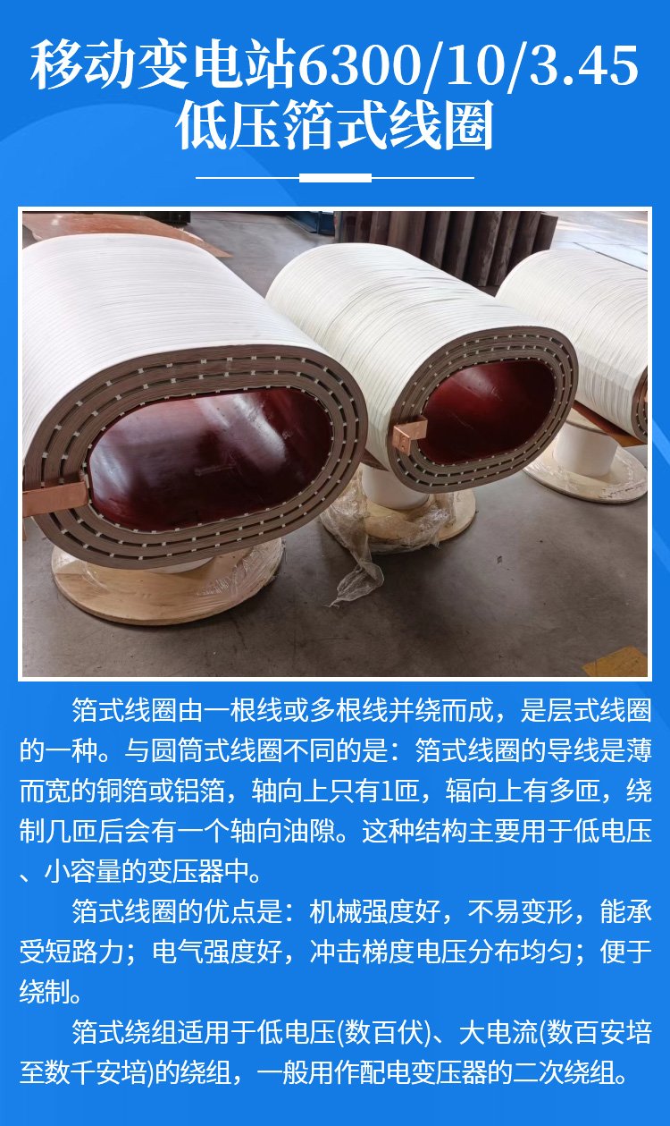 移動變電站6300/10/3.45低壓箔式線圈 中小型變壓器低壓繞組